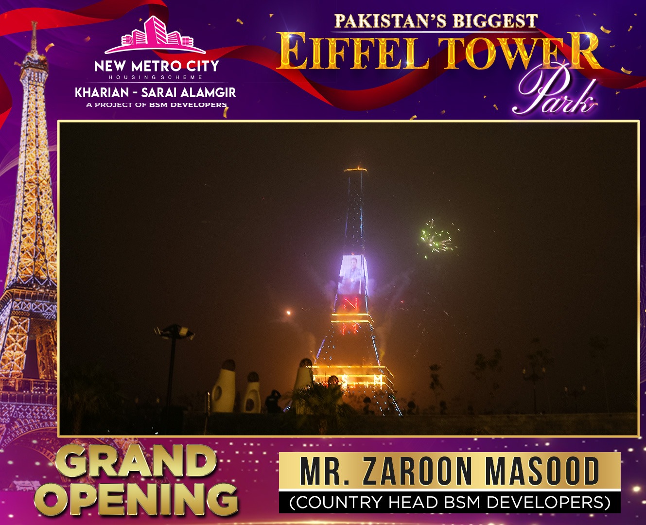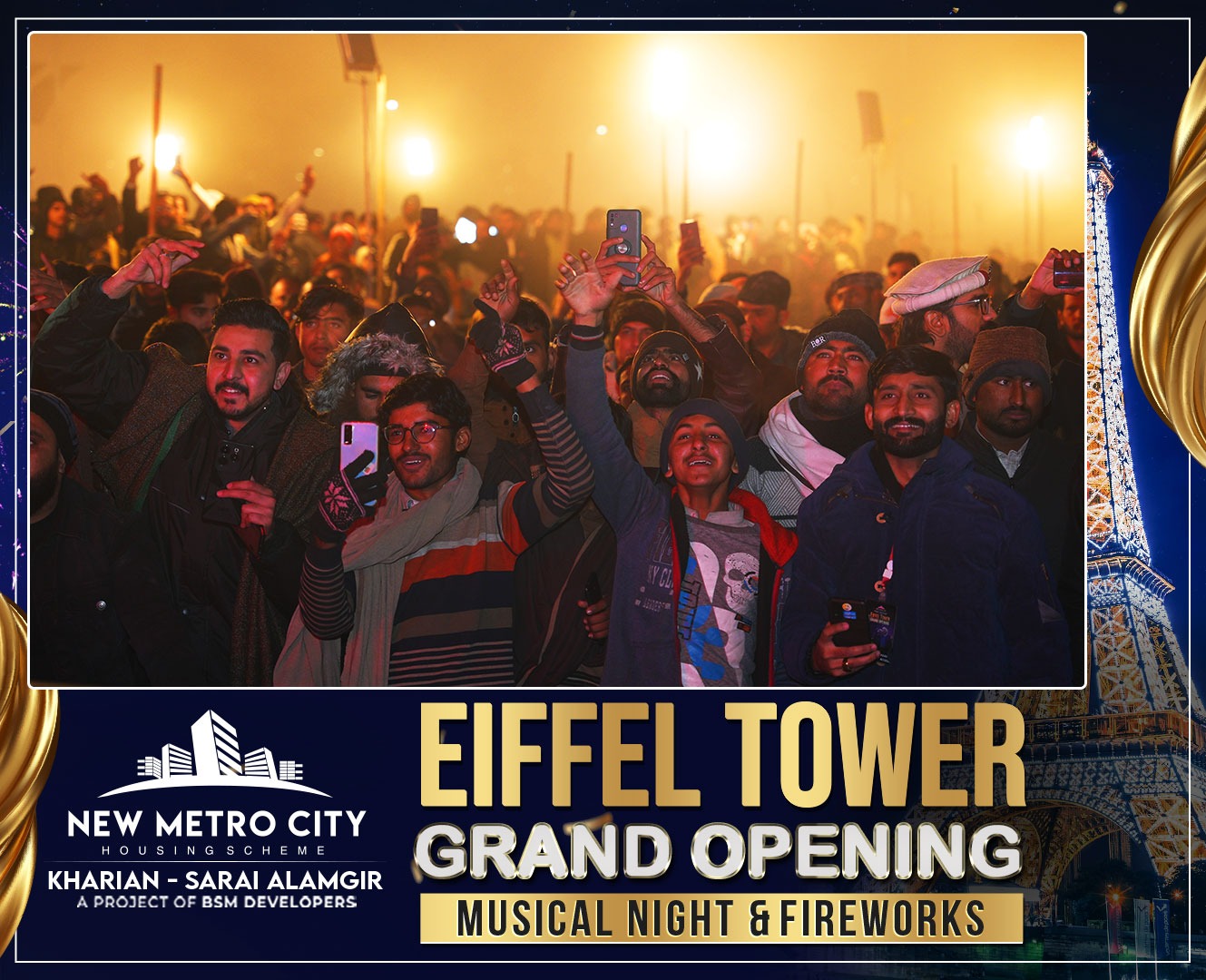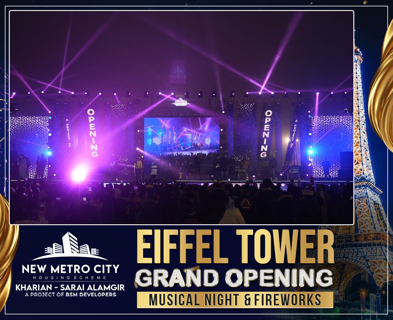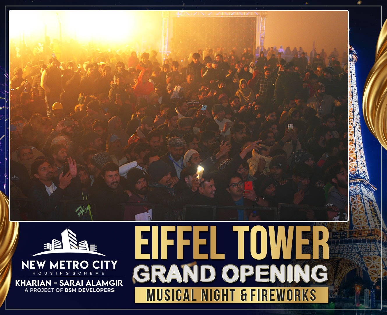 Eiffel Tower Grand Opening, Musical Night & Fireworks at NMC Kharian